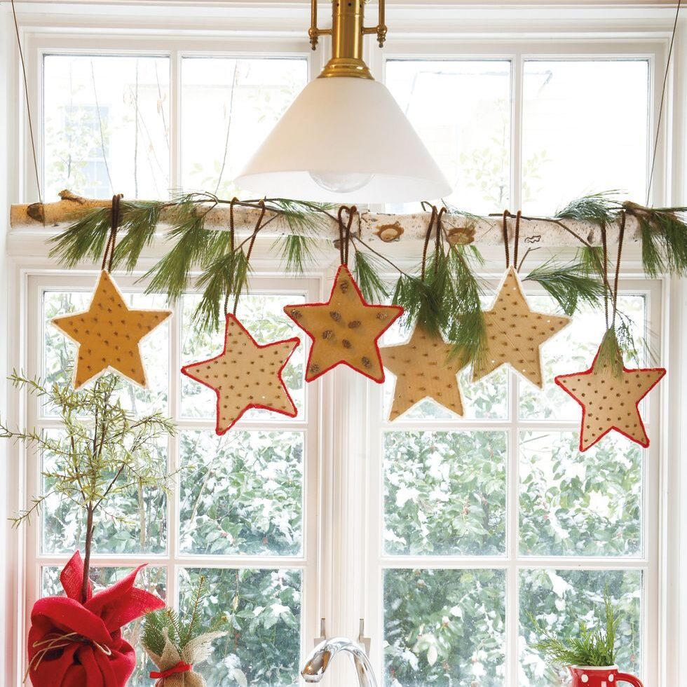 Per realizzare questa simpatica decorazione per finestre, ritaglia le stelle a mano libera dal cartone e infila i chiodi di garofano attraverso una stella per un deodorante per ambienti naturale e conveniente. Foderare i bordi con del filo per un tocco di creatività in più!